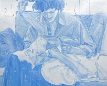 鄭智允畫家的創作實踐通過重構網絡上發現的圖像,與現代網絡關係的形成過程相呼應。畫家並非僅僅複製這些圖像,而是專注於圖中各種元素,如人物的姿勢、表情和狀態,並透過繪畫的語言重新詮釋。單色藍調以及滴落的筆觸去除了原始照片的視覺特徵,使這些圖像由攝影領域提升至繪畫領域。
