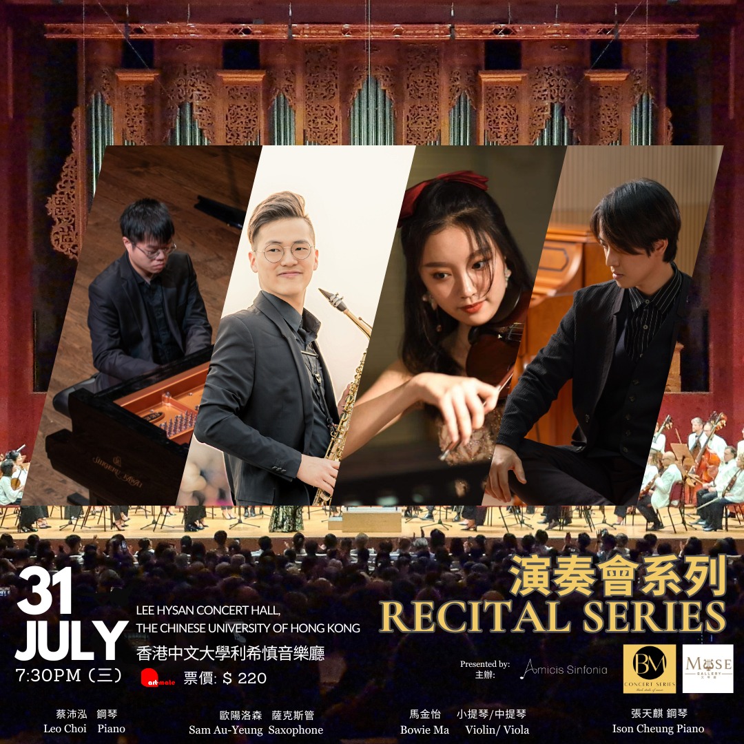三位香港新晉音樂家馬金怡、歐陽洛森、蔡沛泓、將會聯袂天琴館藝術總監張天麒,在今個暑假於香港中文大學利希慎音樂廳舉行演奏會。