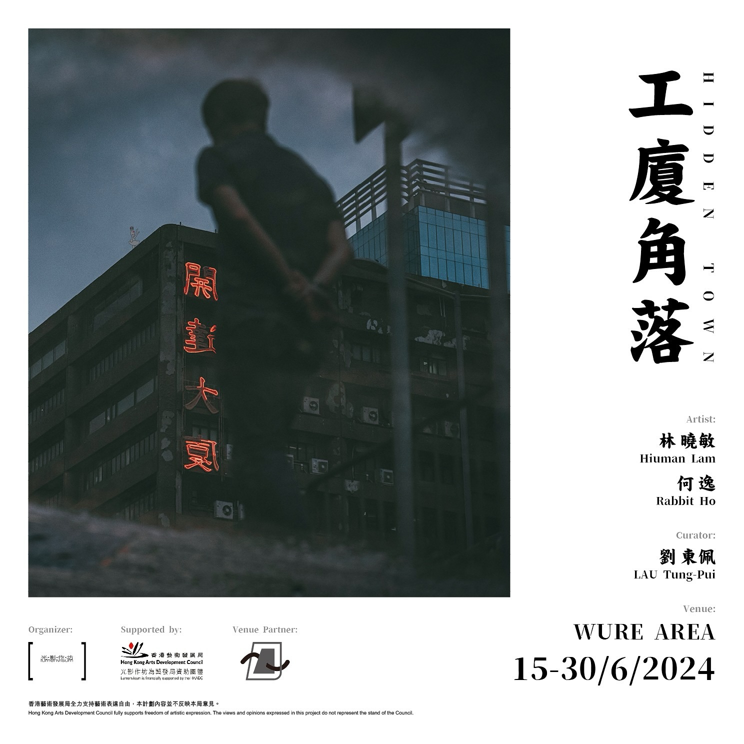 《工廈角落》的靈感,源自展出場地——獨立藝術空間WURE AREA所在的寶隆中心,藉此延伸至九龍灣一帶的工業大廈。兩位攝影師遊走區內工業大廈,一內一外互相結合,以不同角度聚焦不一樣的工廈風景。