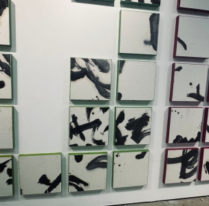《書夢蝶影》展覽探討解構與重構的概念,運用書法作為媒介,表達碎片與整體之間動態的相互作用。展覽中的四張書法作品被切割成多張方塊,再重新排列,呈現出兩種不同的方法。