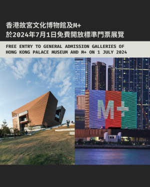 為慶祝香港特別行政區成立27周年,香港故宮文化博物館的專題展覽,以及M+標準門票所涵蓋的展覽及節目將於2024年7月1日(星期一)開放予公眾免費參觀。