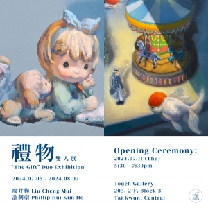 Touch Gallery 於2024年7月推出由著名藝術家廖井梅與許劍豪的油畫聯展——「禮物」。禮物所承載的人與人之間的情感連結,能超越時間而永存。對廖井梅而言,禮物同時是生命的饋贈也是贈予。她從友人贈送的物件,買給女兒的小玩偶,以及大師作品的薰陶,各種視點融入畫中,把物品背後的溫情或思緒,以物質的形式 ——「繪畫」再現。