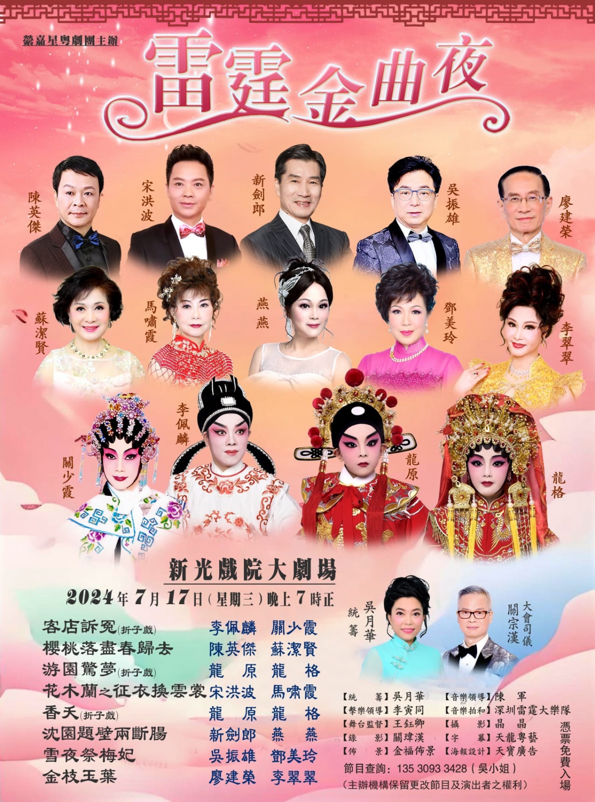 - 節目表 -《客店訴冤》(折子戲)《櫻桃落盡春歸去》《游園驚夢》(折子戲)《花木蘭之征衣換雲裳》《香夭》 (折子戲)《沈園題壁兩斷腸》《雪夜祭梅妃》《金枝玉葉》