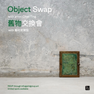 On July 27, PHD Group will host an object swap as a special event in conjunction with Chan Ting's solo show "Dreamskin." Visitors are invited to bring along objects from their past: a toy from childhood; a quirky souvenir from a trip; or any unique objects looking for a second home. The two-hour long event will involve object swaps with other participants and an invitation to share the stories behind each item.