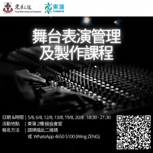 今個暑假,東蒲請嚟擁有多年舞台技術及製作經驗嘅導師,為熱愛音樂表演/後台製作事業嘅青年提供一個舞台表演管理及製作課程培訓!