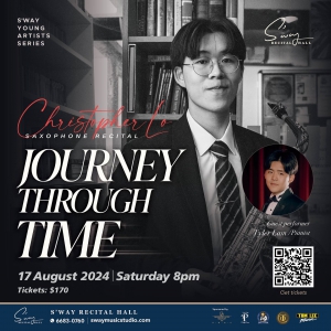 目前就讀於蘇格蘭皇家音樂學院的盧駿澔將與鋼琴家林子軒帶著他們對音樂的熱情來到S’way演奏廳。由巴赫的BWV 1013無伴奏長笛組曲,到十九世紀德默斯曼所創作的《幻想曲》,再到雅各布·特爾·韋爾登的現代爵士作品《Buku》,他將會在8月17號的演奏會展現薩克斯風跨越數個世紀的多樣性。