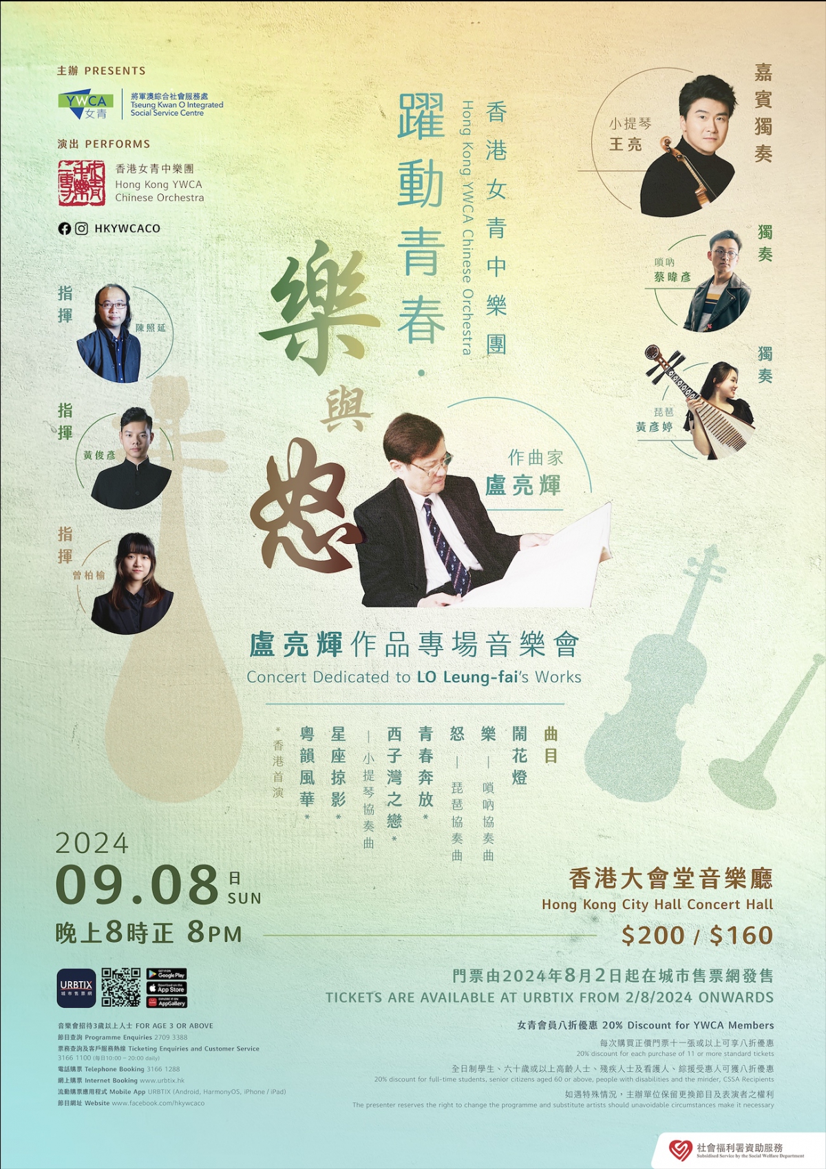 著名作曲家盧亮輝先生,曾寫下不少以青春為主題的樂曲。香港女青中樂團9月舉行的《躍動青春・樂與怒》音樂會,將以專場形式,向聽眾呈獻盧老師的經典作品及香港首演曲目,細數這個人生階段的種種情懷。