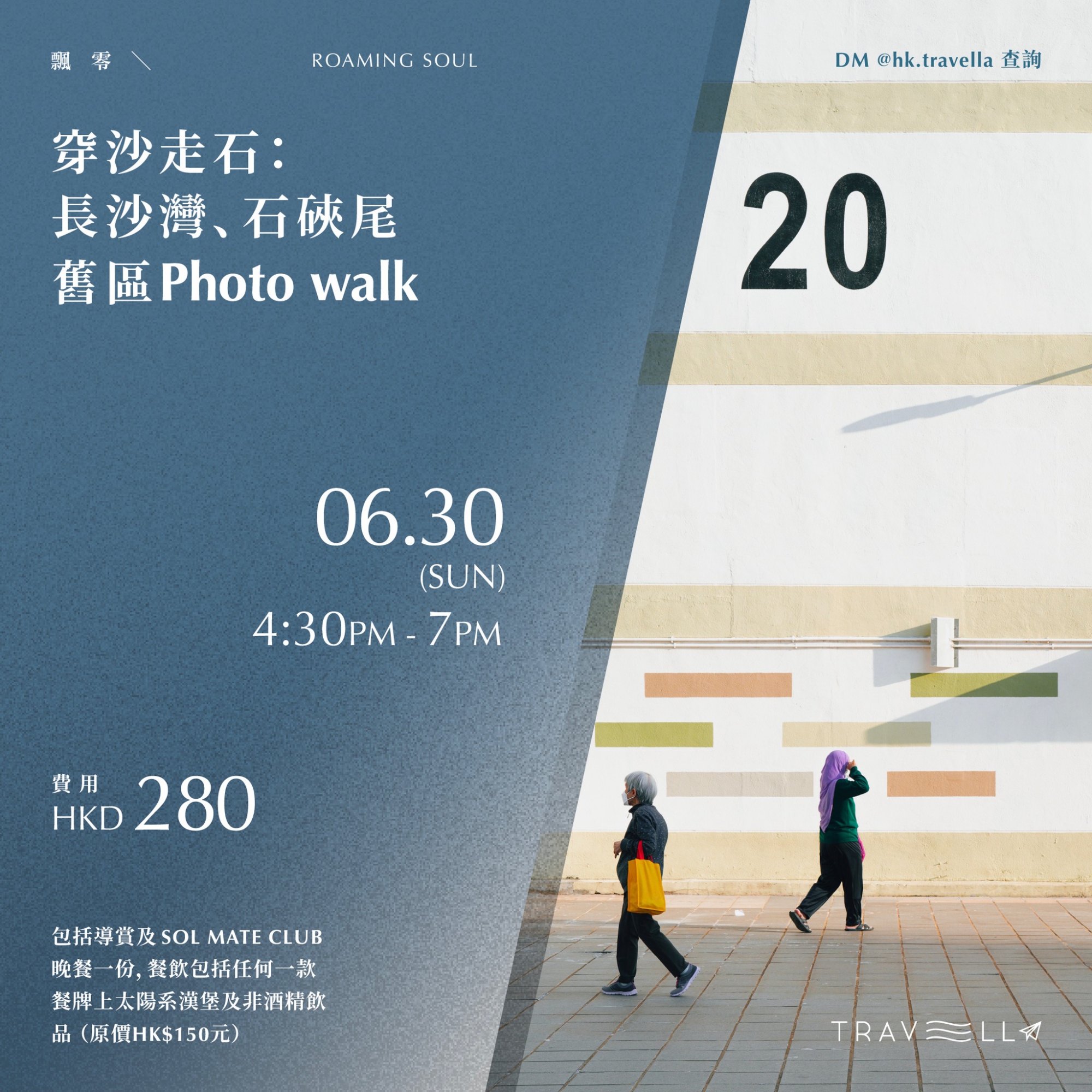Kim在SOL Mate Club舉辦「飄零 Roaming Soul」旅行攝影展,本photo walk正是「飄零 Roaming Soul」系列活動的第一炮。而SOL Mate Club一直著重與社區的聯繫,團隊創作了多款本地特色飲料與漢堡。攝影行後,我們將於SOL Mate Club享用特色漢堡晚餐與飲品,並觀看攝影展。