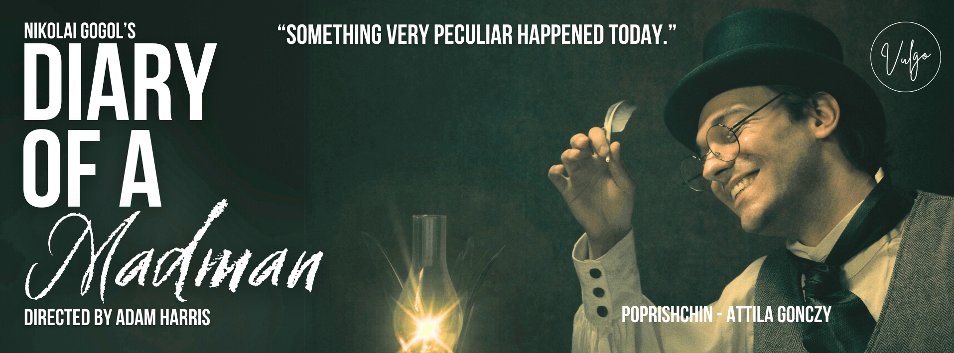 VULGO 劇院自豪地呈現一部令人難忘的單人戲劇《狂人日記》,該劇改編自尼古拉·果戈里 (Nikolai Gogol) 的 19 世紀精彩短篇小說。走進波普里希欽混亂的心靈,了解他對自己理智的鬆懈控制。