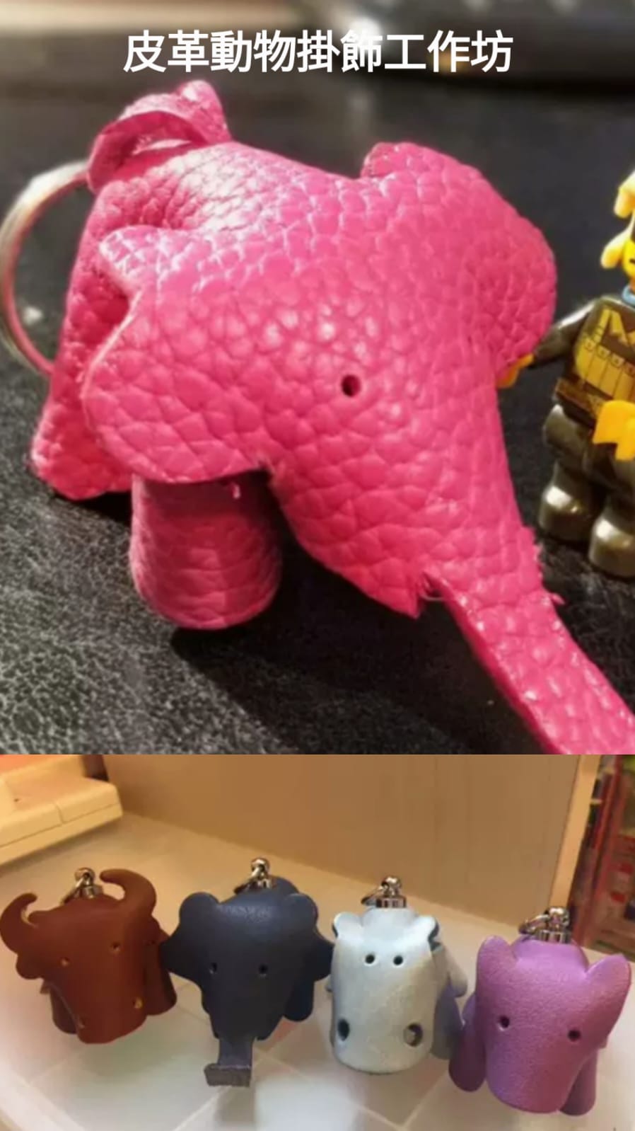 工作坊會使用真皮製作動物掛飾,當中會教授大家印紙樣、裁剪皮革、打孔、安裝配件及索線等。參加者可以選擇自己喜歡的動物圖嗎,包括大象、熊、河馬、牛和狼等。每位參加者可以製作兩個皮革動物掛飾。