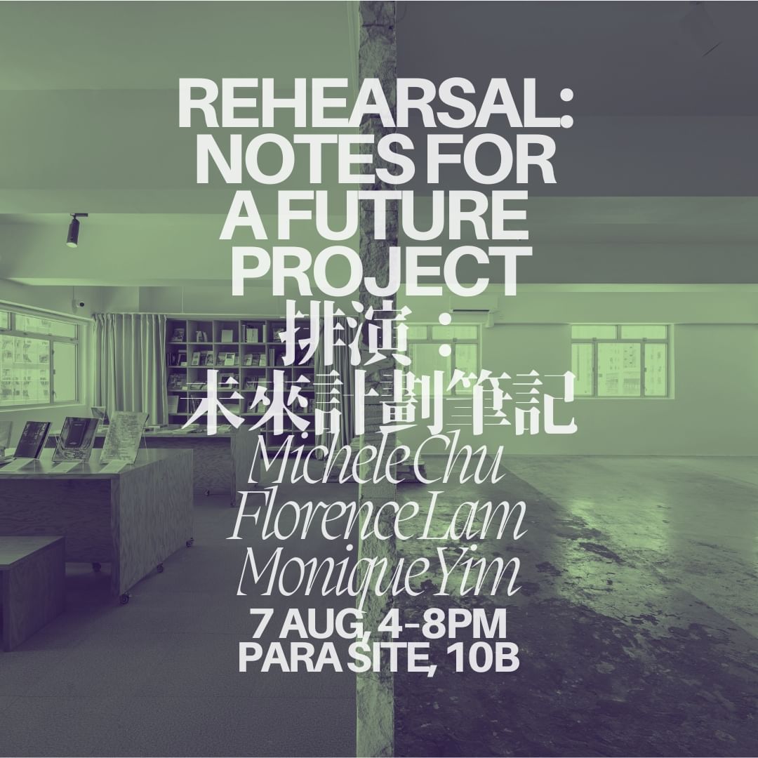 藝術家朱凱婷、Florence Lam、嚴穎嘉將於Para Site十樓擴建空間主持開放日「排演:未來計劃筆記」,作為其研究駐留的公眾活動。他們將展示其創作素材,並設計各式活動,邀請觀眾前來交流。藝術家將為觀眾的參與作匿名紀錄,成為其未來創作的靈感。觀眾可於活動期間隨時到訪。自2024年7月,三位藝術家在十樓空間內外與助理策展人郭芷凝作實地考察,從而籌備即將舉行的展覽。