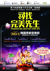 由大韓民國駐香港總領事館及駐香港韓國文化院主辦第十四屆韓國十月文化節即將開幕,當中韓國No.1音樂劇《尋找完美先生》將會在文化節期間進行公演。