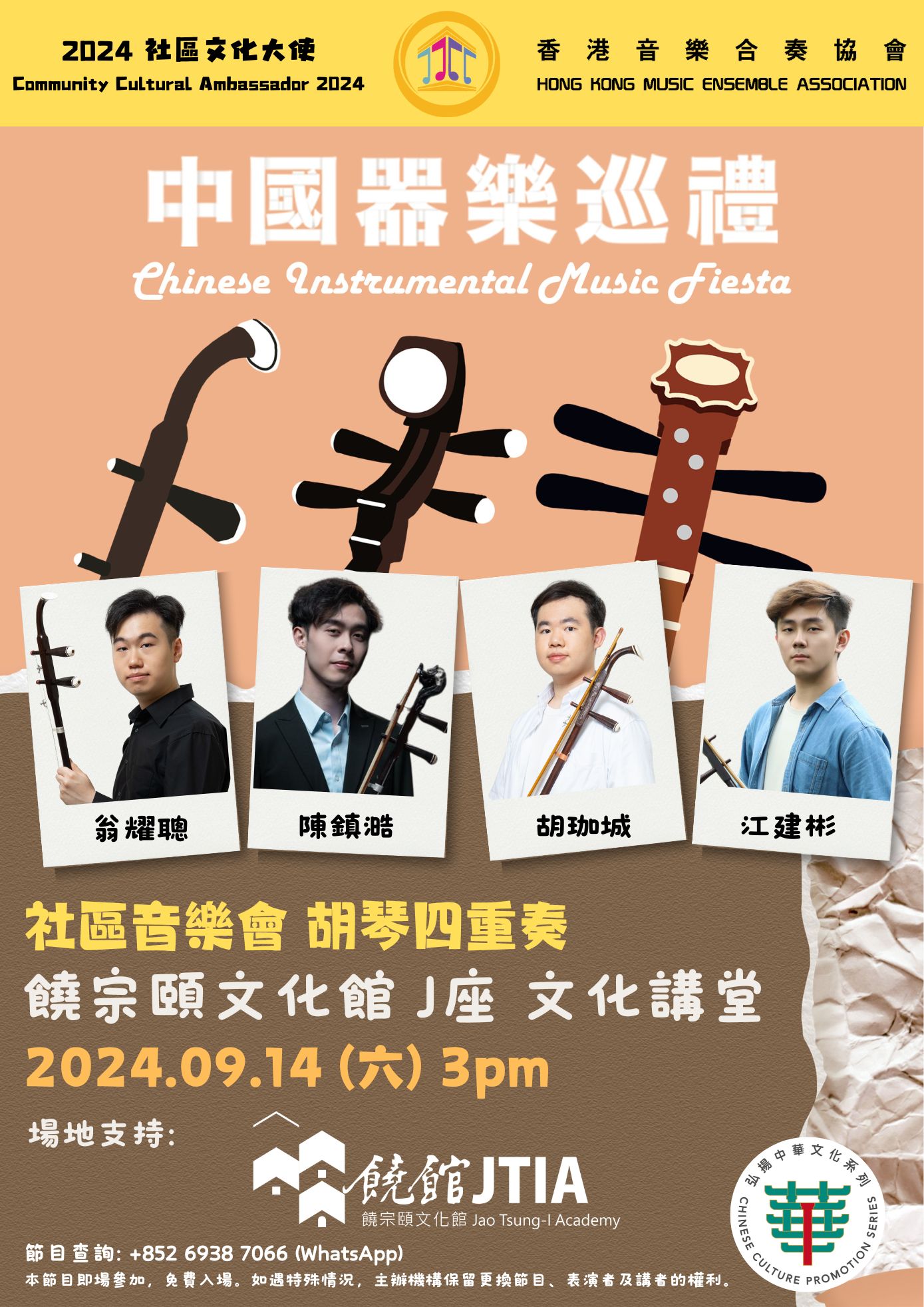 「中國器樂巡禮」分別以琵琶、胡琴及阮咸組成三隊重奏組合,透過社區音樂會、重奏示範及音樂講座,讓香港市民認識這三種中國器樂的重奏藝術。