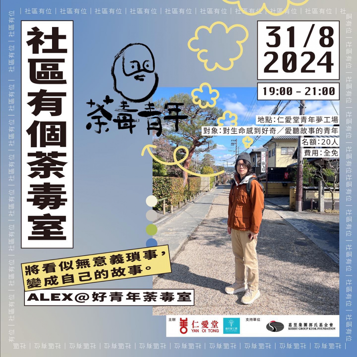 今次《社區有位》系列,我們邀請到Alex來與我們分享他的個人故事。他將探討如何從看似瑣碎、無足輕重的事物和細節,發掘其中蘊藏的影響和意義,以及這些經歷如何推動他成立了「好青年荼毒室」。