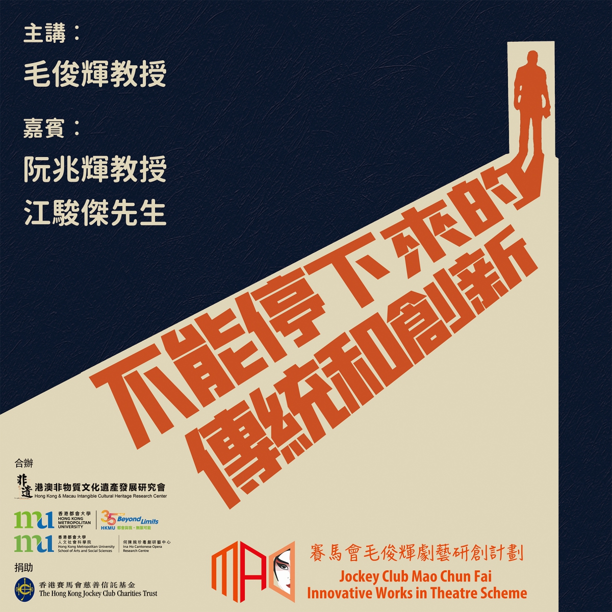 公開講座由香港都會大學 「何陳婉珍粵劇研藝中心」及「港澳非物質文化遺產發展研究會」合辦,屬「賽馬會毛俊輝劇藝研創計劃」系列活動之一。