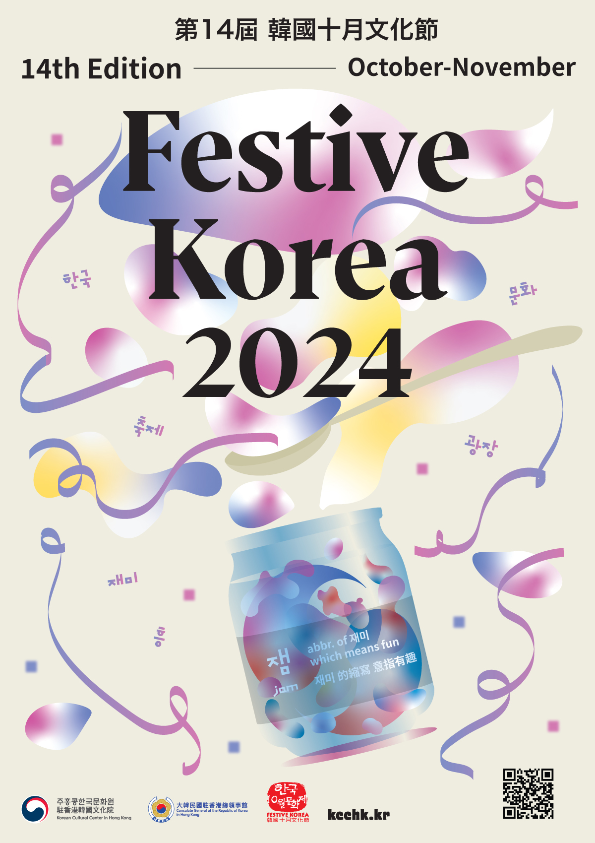 今年的韓國十月文化節將以JAM Korea為主題,提供豐富多彩的節目。JAM源自韓語詞彙잼,意指「有趣」。文化節期望通過超過30個涵蓋表演藝術、視覺藝術、電影、體育、韓國美食的藝術文化項目、教育活動和工作坊,展現韓國的活力和多元魅力。