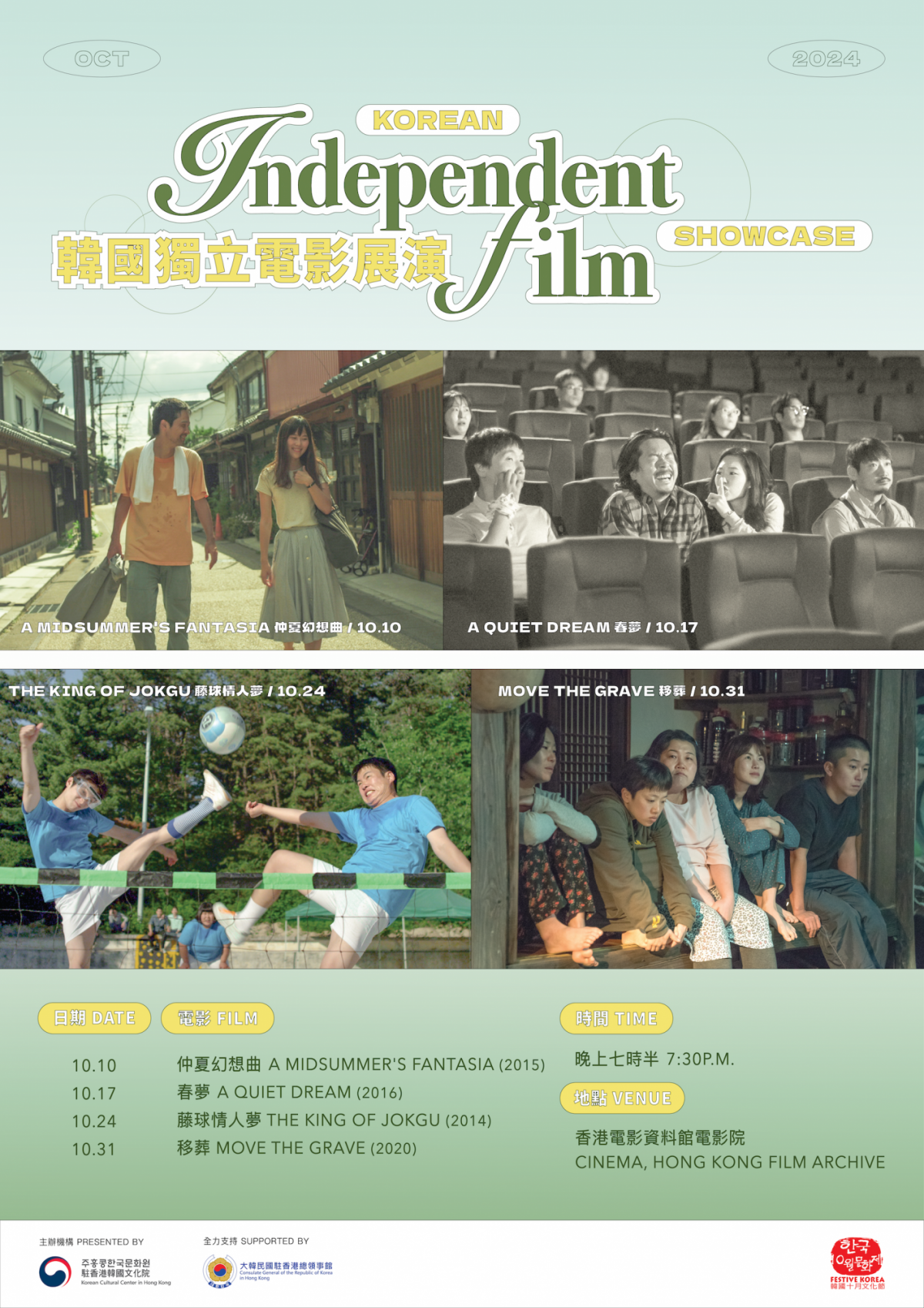 駐香港韓國文化院繼續舉辦韓國獨立電影展演,一共上映四部不同類型的韓國獨立電影,分別是《仲夏幻想曲 ( 2015 )》、《春夢 ( 2016 )》、《藤球情人夢 ( 2014 )》、《移葬 ( 2020 )》。