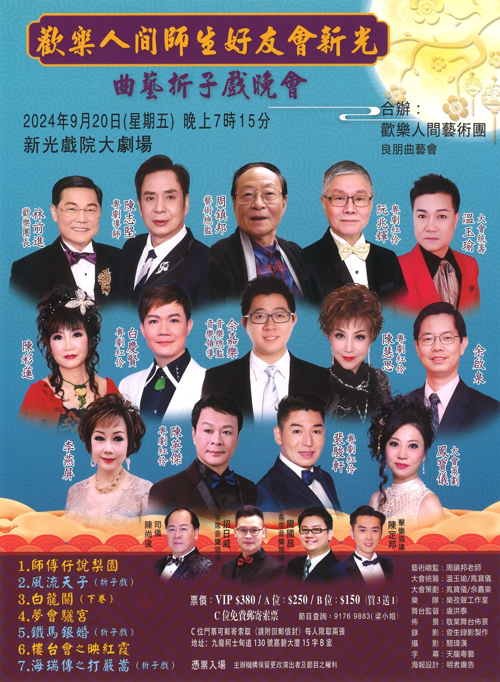 節目一覽:1.師傳仔說梨園2.風流天子(折子戲)3.白龍關(下卷)4.夢會驪宮5.鐵馬銀婚(折子戲)6.樓台會之映紅霞7.海瑞傳之打嚴嵩(折子戲)