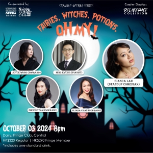 仙女、女巫、魔法藥水… 這會令你聯想到什麼? 萬聖節即將到來,好好利用我們的活動機會,來參與充滿幻想、有趣詭秘的歌劇之夜吧。 大家可以穿上最喜歡的萬聖節服裝,一齊開心享受動聽歌劇曲目!