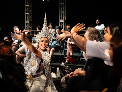泰國新晉編舞Kornkarn Rungsawang由傳統祭祀儀式引發靈感,以當今的科技結合舞蹈元素,扣連現實時空與虛擬神界,並以自身作為媒體,創作了跨越現實、虛擬與精神世界的互動新作《舞求必應》。