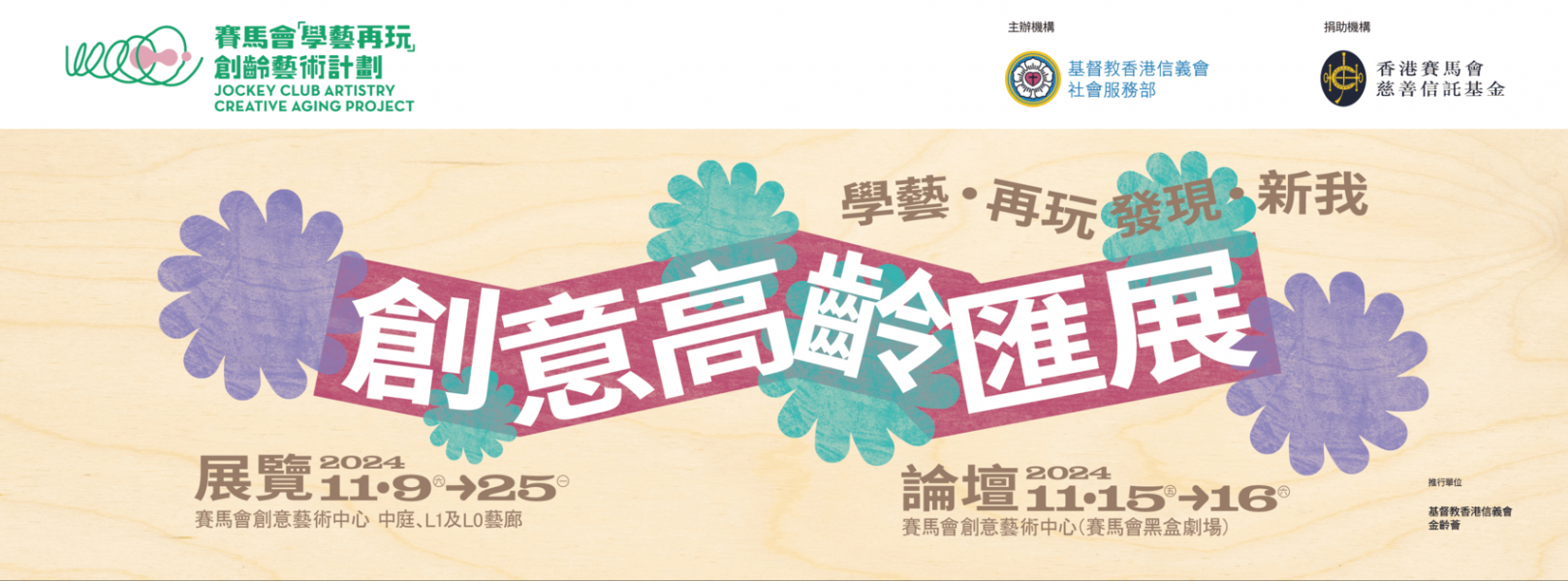 計劃將於 JCCAC 舉辦《創意高齡匯展》展覽X論壇,展出計劃三年的成果!超過170位長者經歷為期12個星期的漸進式學習藝術歷程及作品、藝術家駐留於社福單位的發現,現場更設有創齡工作坊及創齡導賞團!