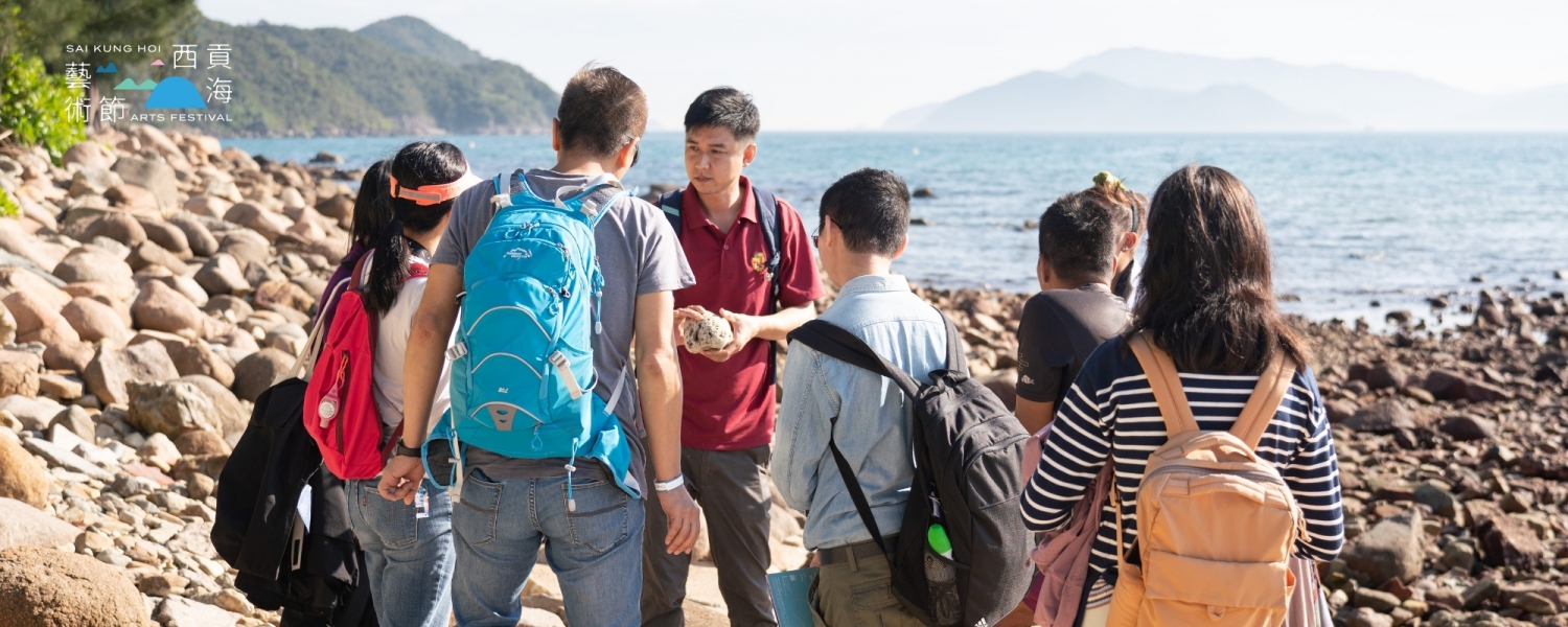 地質公園代表及導賞員將帶領參加者從地質角度遊覽橋咀洲,介紹橋咀洲的獨特地貌,同時串連島上以自然環境作為創作理念的藝術品。隨處走走、隨處感受不同天然材質,如石頭和沙。