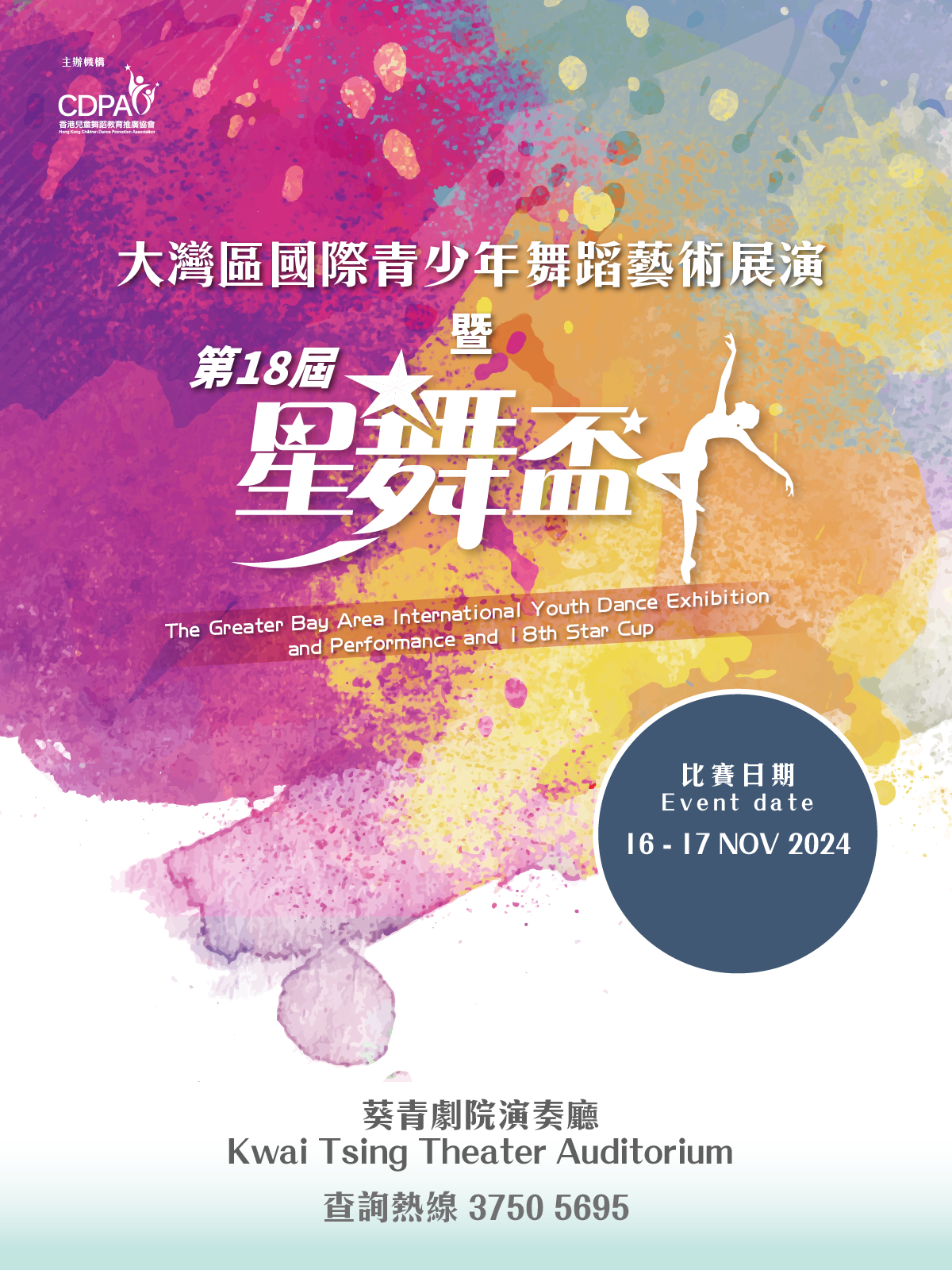 香港兒童舞蹈教育推廣協會 ( CDPA ) 一直致力推動多元化的舞蹈教育,讓兒童在舞蹈學習過程中發揮無限潛能。為此,本會舉辦「大灣區國際青少年舞蹈藝術展演暨第十八屆星舞盃」,以持續提昇香港兒童舞台表演水平和表演能力,比賽將於11月16日及11月17日舉行。