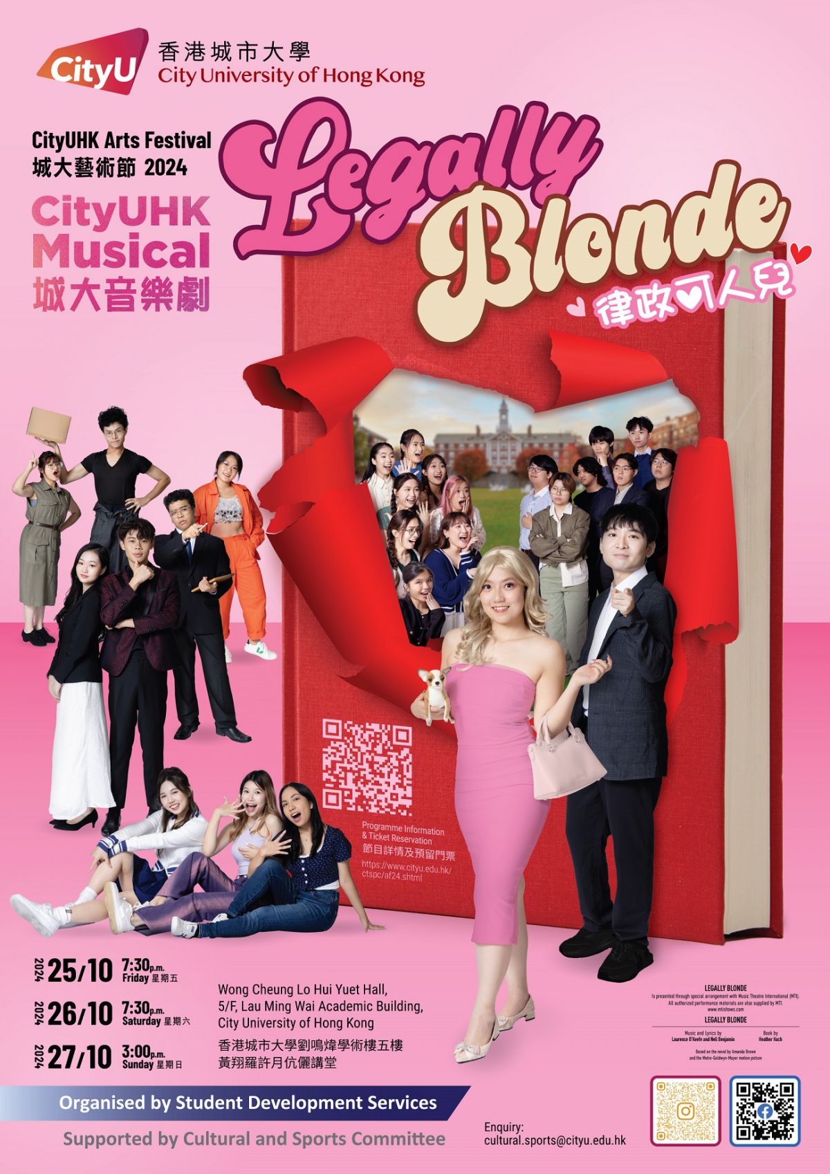 城大音樂劇為您呈獻,百老匯勵志音樂劇《律政可人兒》! 天真開朗的金髮女孩為了挽回前男友而奮力考上哈佛法學院,但初來報到便遭受挫折。心灰意冷的她在這片傷心地慢慢尋回真我,勇敢打破世俗偏見,蛻變成為新一代變革型女強人!充滿青春活力的城大同學以連場歌舞為您打打氣,一同展開追逐夢想的路!