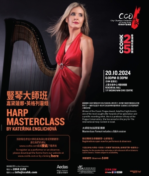 更多詳情:https://zh.ccohk.com/masterclass/harp-masterclass-by-kateřina-englichová