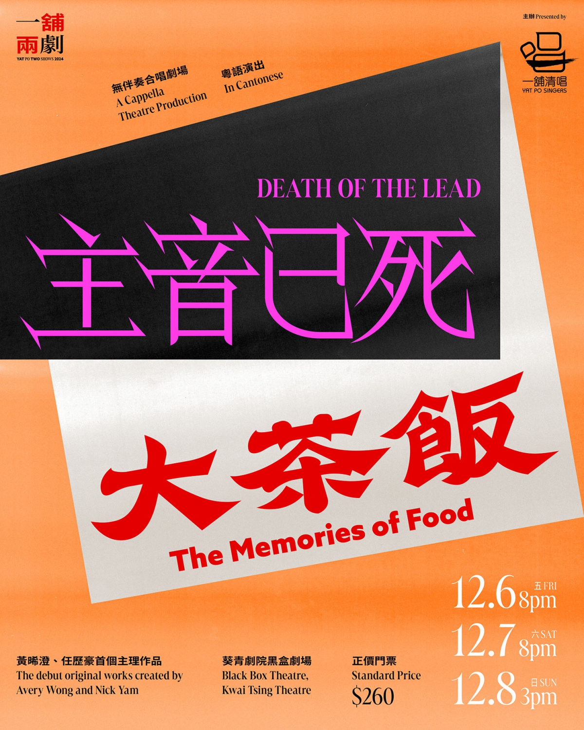 實習無伴奏合唱藝術家—黃晞澄與任歷豪進團後首個原創作品,由主理概念、作曲、編曲,為觀眾獻上無伴奏合唱劇場:《主音已死》及《大茶飯》。