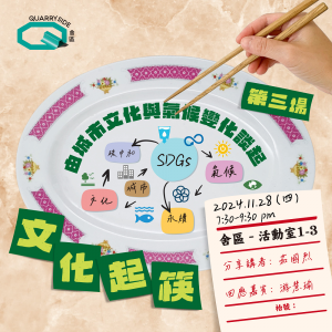第三場「文化起筷」邀請到資深文化人茹國烈先生和文化遺產保育專家游慧瑜女士,細談城市文化同氣候變化之間微妙嘅關係。