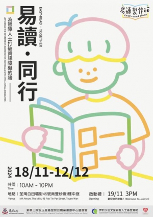 我們希望公眾透過這次展覽,認識到易讀圖文對促進社會共融的意義,並推動其在香港的發展。未來,我們將持續推廣易讀服務,開放更多創作與合作的機會,讓易讀圖文進入社區、商業機構、展覽廳等公共空間。邀請你一同前來觀賞及參與《易讀同行》展覽,與智障人士同行,共建無障礙的友善社會,使每個人都能平等獲取資訊和機會!