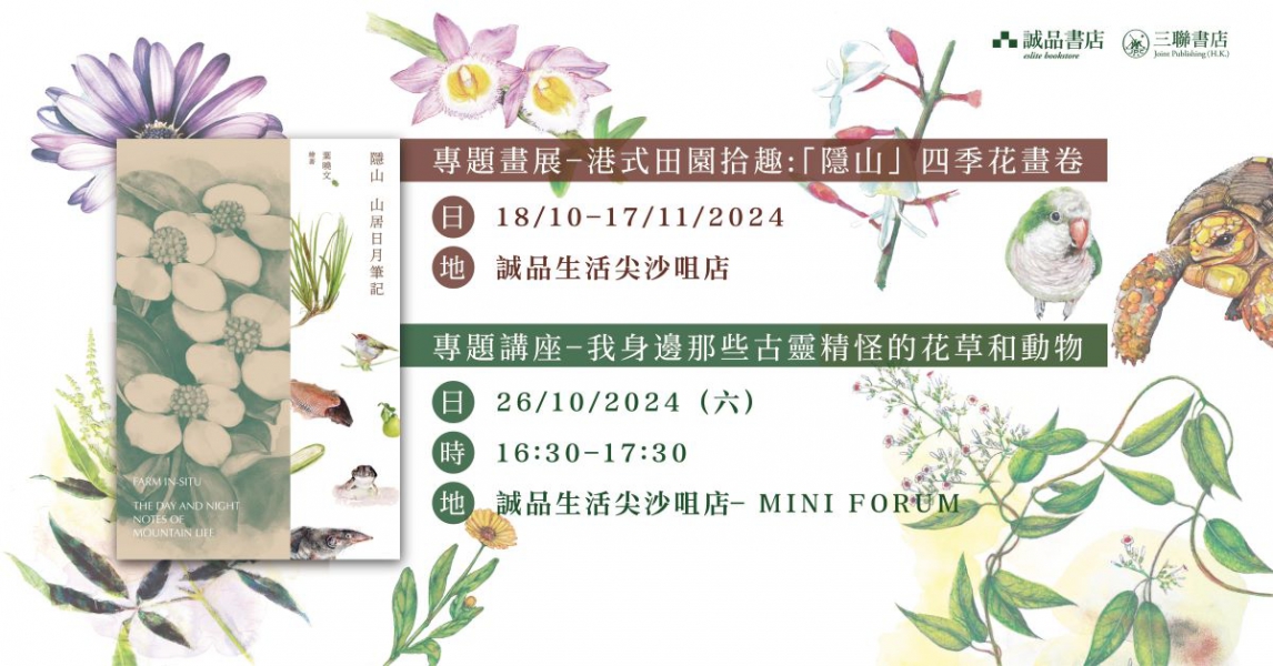 三年後的今天,曉文出版新書《隱山:山居日月筆記》,介紹中國歷代田園文學、香港食農文化及自然生態。今次畫展《港式田園拾趣:「隱山」四季花畫卷》裡展出的畫作,皆由曉文所親繪,呈現最真誠,又極具意趣的港式田園圖像。