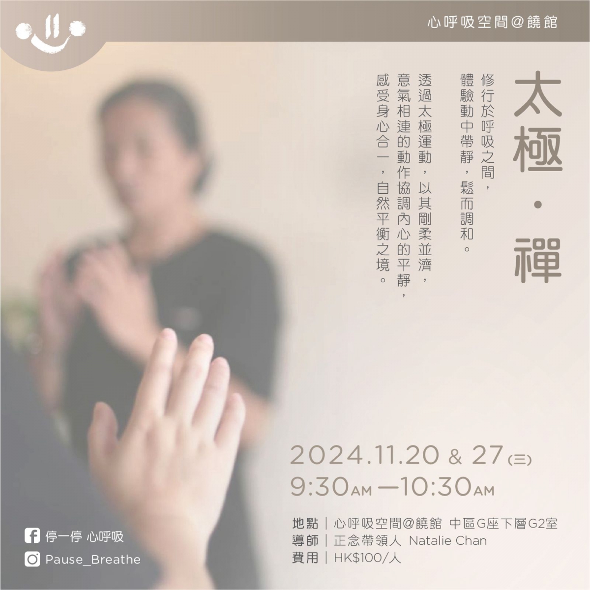 修行於呼吸之間,體驗動中帶靜,鬆而調和。透過太極運動,以其剛柔並濟,意氣相連的動作協調內心的平靜,感受身心合一,自然平衡之境。