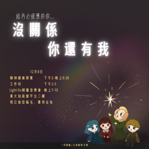 展覽內容:抑鬱症和思覺失調康復者故事分享、收集多位不同年齡的心事、「你寫我回信」樹窿投稿收集