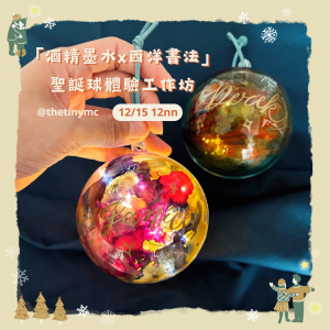 與摯愛一起在節日建立儀式感,帶走專屬你們的閃亮聖誕球。酒精墨水抽象而色彩斑斕的風格為聖誕增添氣氛,加上西洋書法的⼿寫溫度,以及配置小閃燈,必定為今年聖誕帶來非一般的點綴。工作坊內容:參加者可以體驗酒精墨水的繪畫技法,亦會學習軟筆⻄洋書法的基本筆劃及練習書寫單字的技巧,享受製作聖誕裝飾球的樂趣。