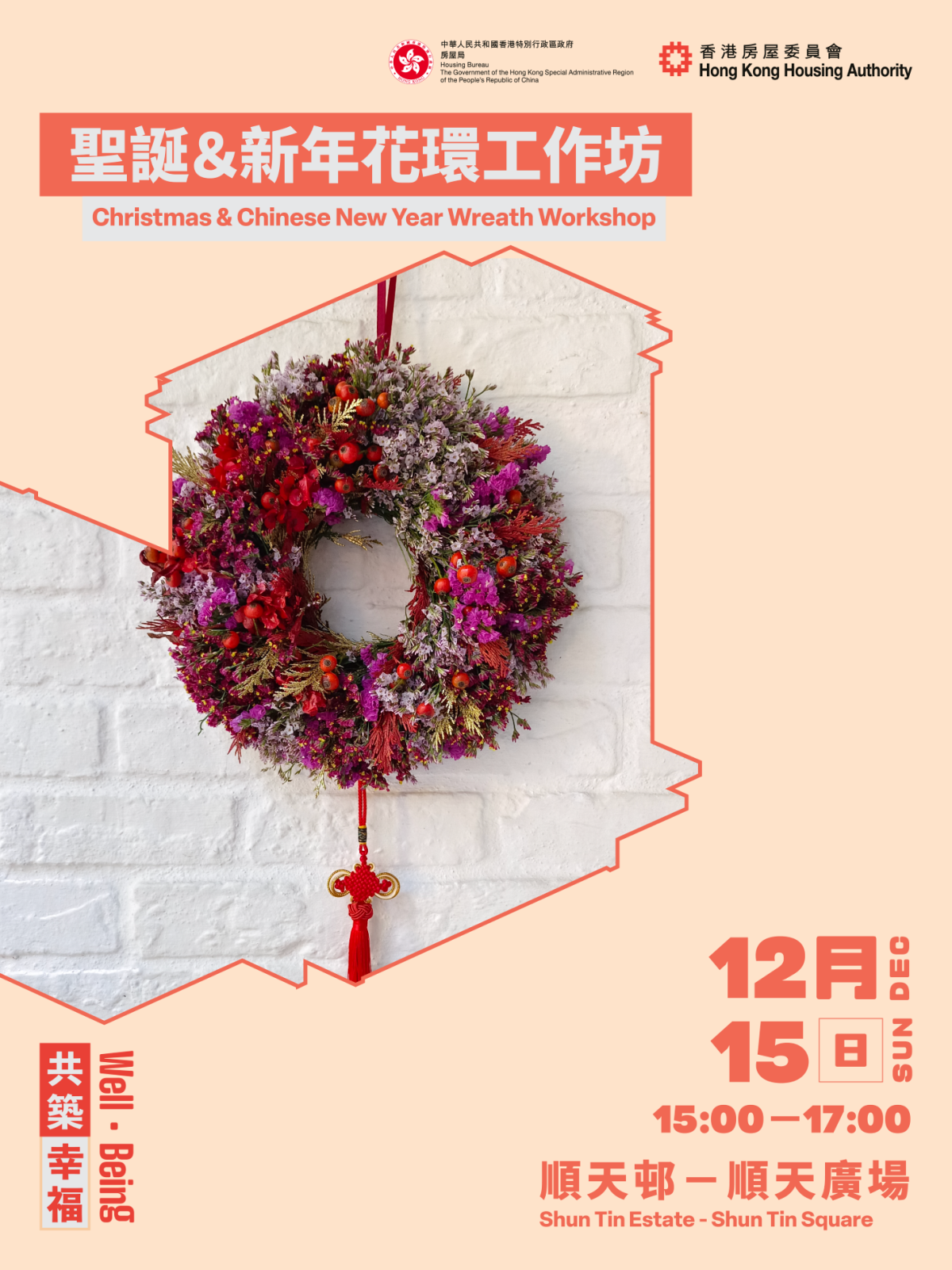邀請本地花藝師Louise教授大家利用不同花材,製作成聖誕花環,節日過後參加者可用工作坊所提供的新年主題素材,自行改造成新年花環,既應節又環保。