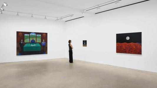 Once in a Blue Moon features a body of new paintings that focus on different types of full moons across the lunar calendar—with its myriad connotations—as their central compositional element. Also on view are a selection of landscapes from throughout Kahn's career, several of which include the moon, often glimpsed in the background, materializing as a sort of omen for the scene laid out beneath. Viewed together, these works exemplify the artist's distinctive approach to the genre. This is Kahn's first solo presentation in Asia and his first with the gallery since his representation was announced in May 2024.