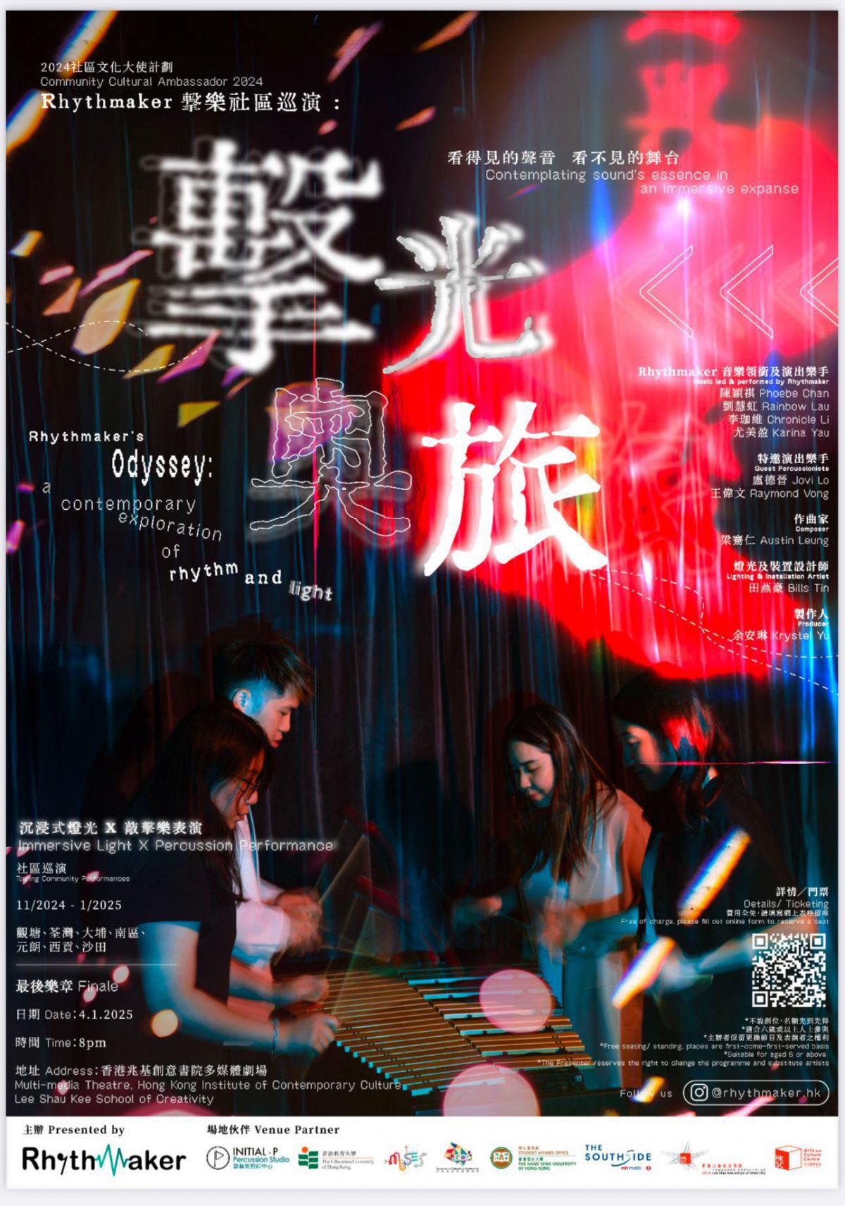 今年11月,Rhythmaker 撃樂社區巡演正式啟動!以夢幻的沉浸式燈光配合敲擊樂表演走進學校及社區,歷時三個月共13場演出,走遍不同歷史文化背景的地區社群,帶領觀眾進入一場令人難忘的光影體驗之旅。