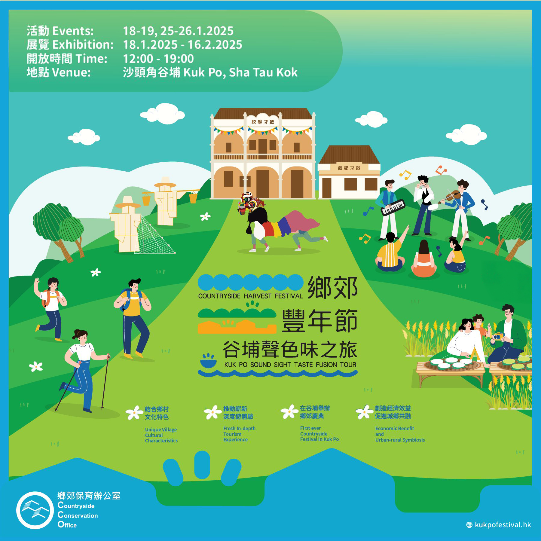探索谷埔村,體驗自然、歷史與人文的聲色味之旅香港鄉郊蘊藏豐富瑰寶,鄉郊豐年節串連起自然生態、鄉村歷史建築及人文風情,推動嶄新的深度生態遊體驗。讓我們率先帶你走進沙頭角谷埔村,在紅樹林、蘆葦叢與歷史建築之間,展開一場「聲—色—味」之旅。