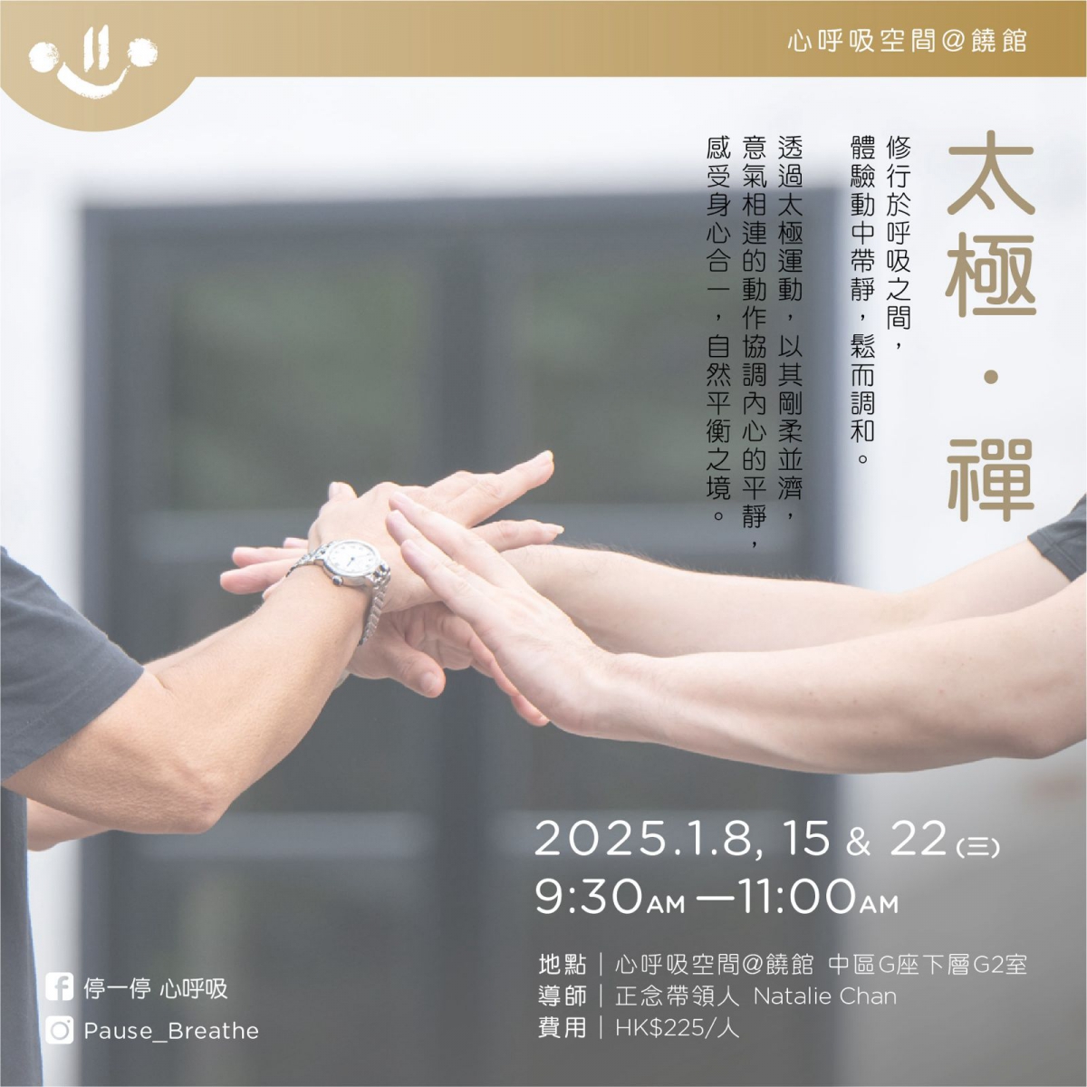 修行於呼吸之間,體驗動中帶靜,鬆而調和。透過太極運動,以其剛柔並濟,意氣相連的動作協調內心的平靜,感受身心合一,自然平衡之境。