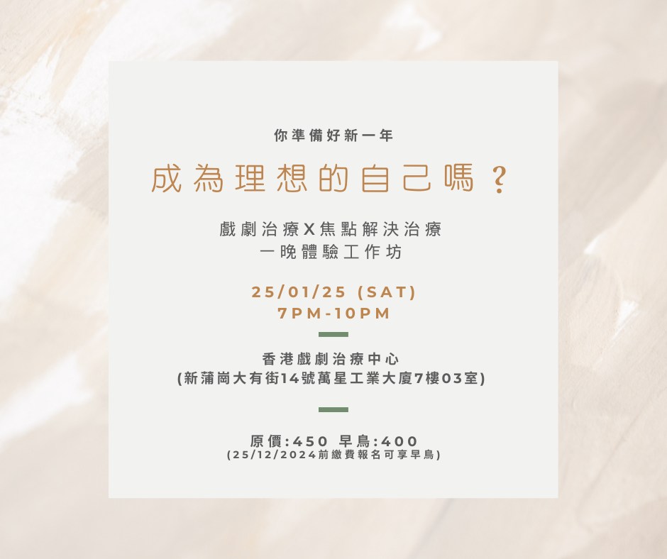 坎伯曾言:「神話是眾人的夢,夢是私人的神話」透過戲劇治療,親身遊走夢與神話,連結你潛藏心底的力量,再以焦點解決治療以目標導向的治療方法,協助你面對新一年的挑戰!