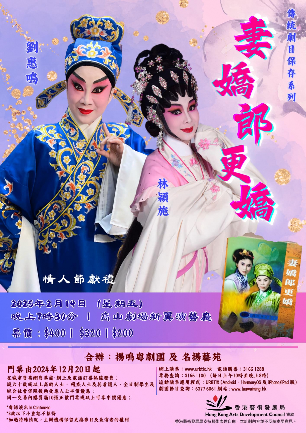 此劇乃前輩任劍輝、白雪仙主演之粵語長片愛情故事,十多年前本團聘請新劍郎先生重新改編成舞台版,將此粵語長片電影劇本搬上粵劇舞台正式上演,引起觀眾對粵語長片的集體回憶,為改編劇作重注新生命。2月14日情人節,特意選演這一套家傳戶曉的黑白愛情電影故事,內有不少豐富唱曲,和新穎佈景設計上,還有劉惠鳴小姐特別邀請前輩南紅女士為本劇親繪的海棠情花,流露浪漫詩情畫意,與各位情人戲迷共賞。