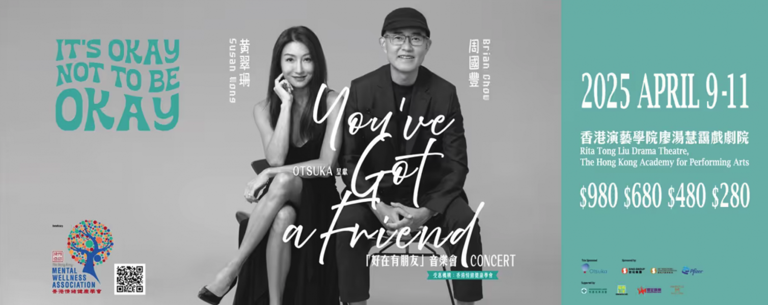 鑒於本地和全球心理健康的重要性,香港情緒健康學會將於2025年4月9日至11日舉辦慈善活動 —《好在有朋友 You've Got A Friend音樂會》,由資深傳媒人周國豐擔任導演兼talk show主持,HiFi天后黃翠珊Susan Wong演唱,向觀眾傳達情緒健康的正面信息以及樂觀態度。