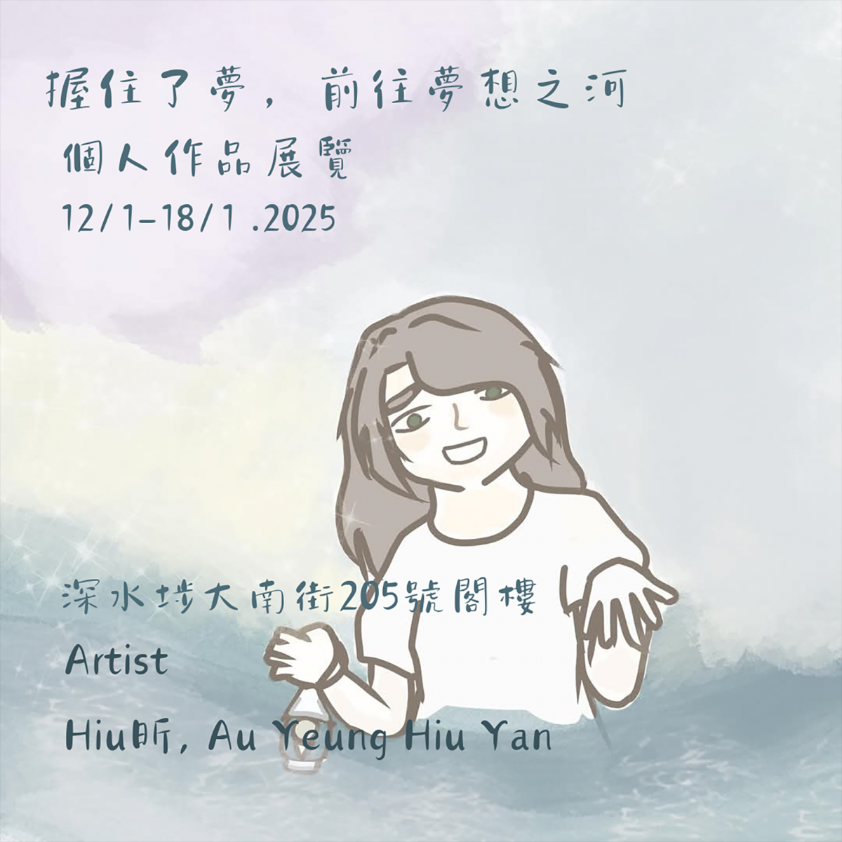 Hiu昕是一位插畫家,繪畫心靈與成長背景有關為主題。今次為大家展示出她對於這個世界的憧憬,充滿勇氣與力量,期望讓大家有一個放鬆與無憂的旅程,坐上她為大家準備好的小船,迷惘也好、四周飄泊也好,到最後,向著理想的方向並前進,誰人也能達成夢想,用時間証明自己,其實也能實現。