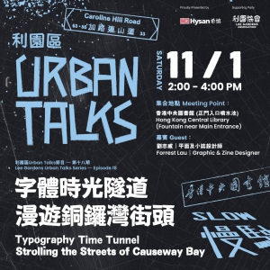 第十八期 Urban Talks 是一個字體文化導覽遊,由平面及小誌設計師 劉志威 親自帶領。我們將穿梭銅鑼灣的街頭巷尾,細看不同年代的字款設計,發現字體背後的城市記憶,感受香港文化脈動的獨特魅力。