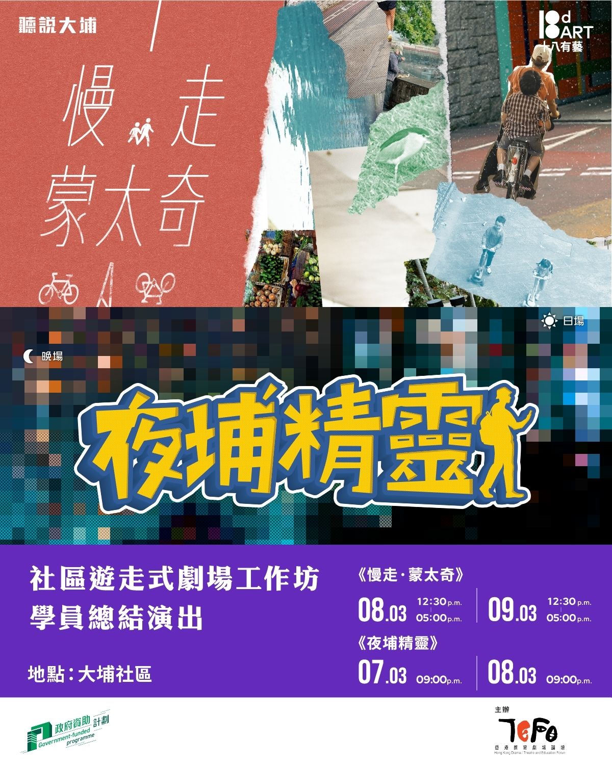 《聽說大埔》2024-2025 社區遊走式劇場工作坊的學員,將於大埔的獨特地景之中,呈現各個社群的生活故事。演出為雙劇目,分別於日間及夜間進行。你將與學員一同步出劇場,遊走於社區之間,一起走一趟奇妙的故事之旅。