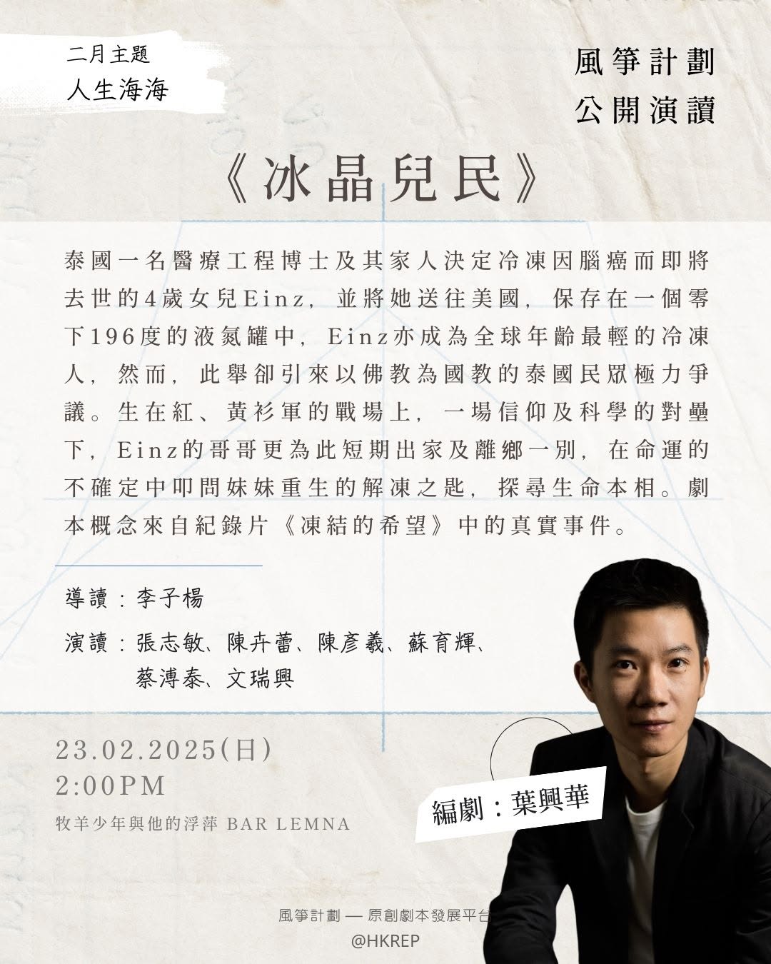誰不是在人生的大海中載浮載沉?時而隨波逐流,時而幻化成冰晶渴望逃離世間的一切,但又可以往何處去?世間的戲劇,幾多是關乎命運的無奈?本月份的「風箏計劃」,從蒼涼世態,叩問人的存在意義。