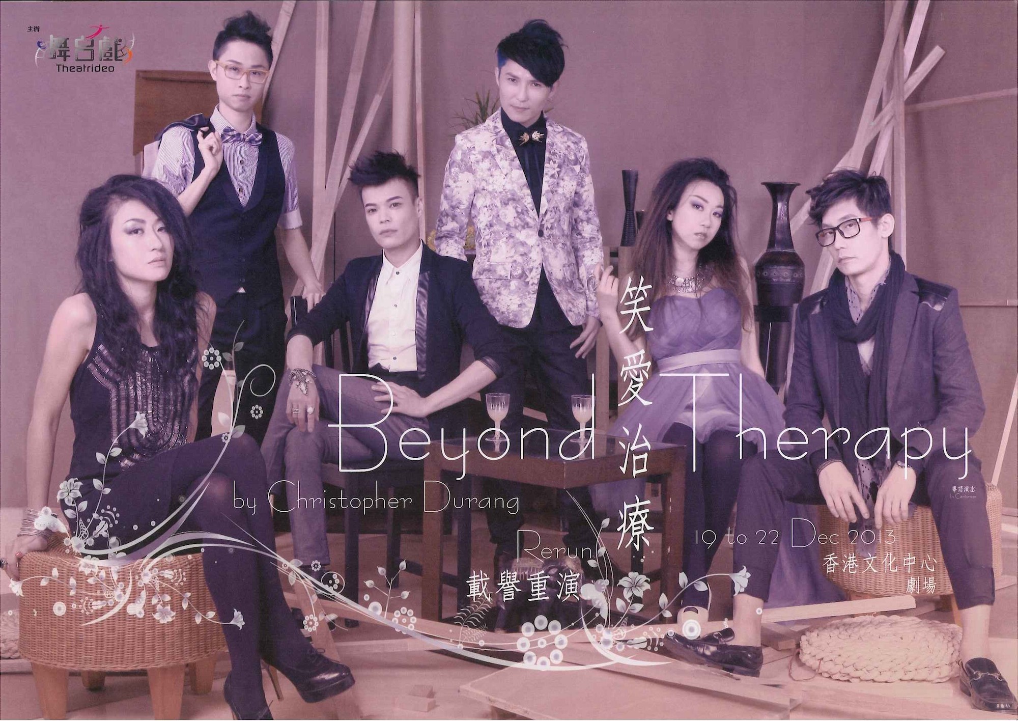 超級巨聲 劉威煌 首個舞台演出,找來經驗豐富的劇場新女性 郭麗敏、馮兆冊 及人氣男主播 歷蘇 同台,連同特邀翻譯 鍾燕詩,繼《未死Duck》《鴨仔嘜》《紅人唔紅命》及《打開襟勾說亮話》後,又一爆笑大作,是次全新演繹喜劇大師 Christopher Durang作品《Beyond Therapy》,12月19至22日文化中心劇場笑住迎聖誕。