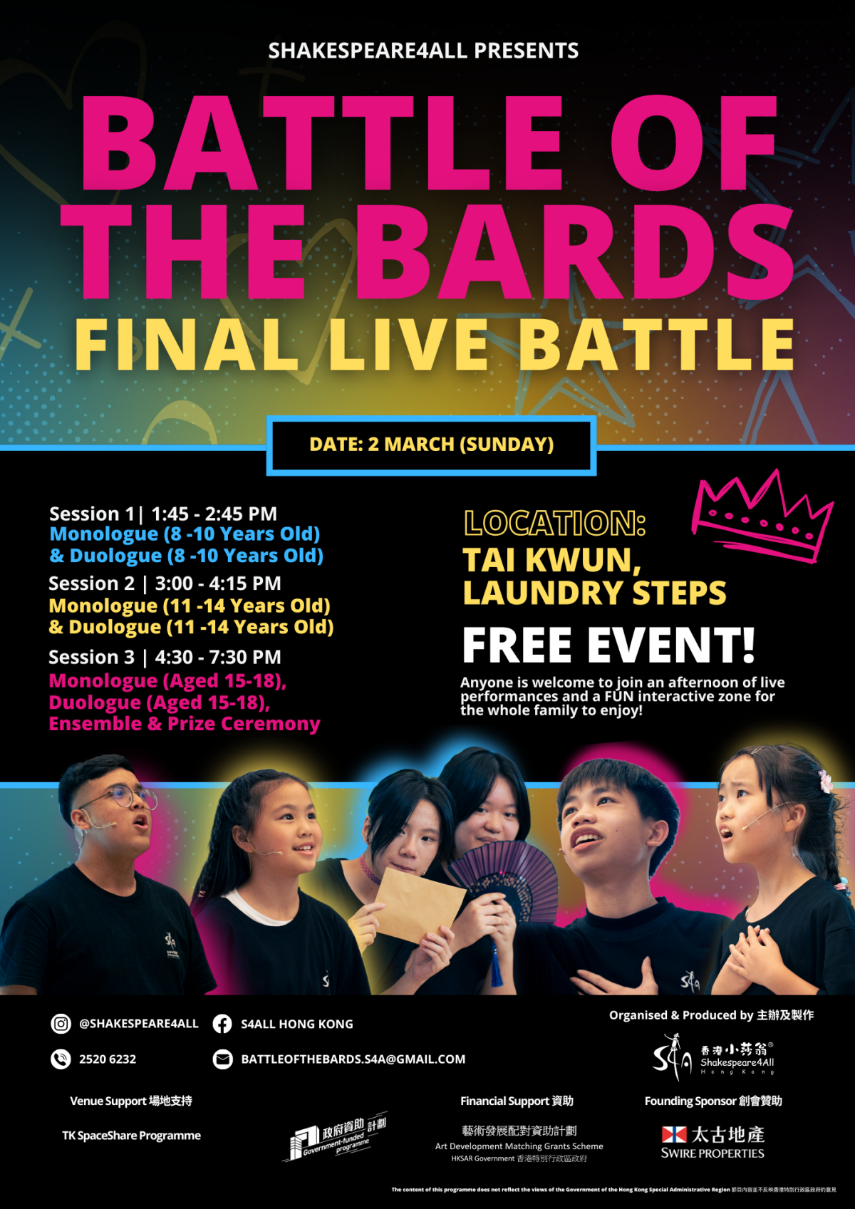 更多詳情:https://www.s4a.org.hk/upcoming-events/upcoming-events/battle-of-the-bards-final-live-battle